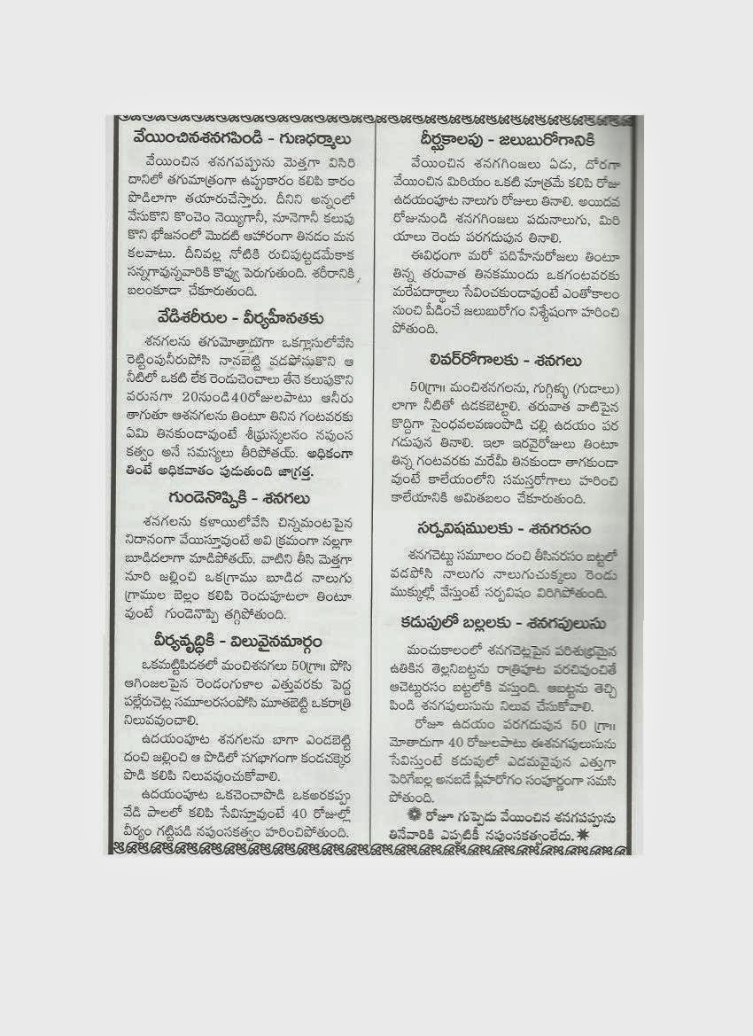shanagalanu thagumothaduga 1 glass lo vesi rettimpu neeru posi ,nanapetti vadaposukoni aa neetilo 1 or 2 sppons thene kalupukoni varusaga 20 nundi 40 rojula patu aa neeru thaguthoo , aa shanagalanu thintuvundali ,thinina gantavaraku vere yemi thinakunda vundali.